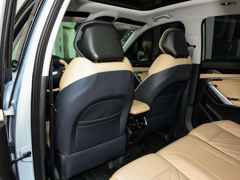 Отделка интерьера и сидений тёмно-синей экокожей со светло-серыми вставками