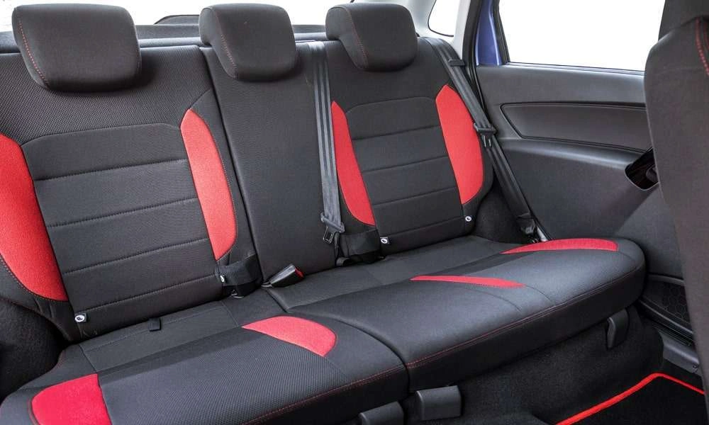Обивка сидений ткань. Цвет черный с красными элементами